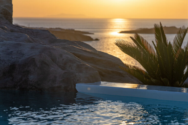 A unique location just 500 meters from the heart of Mykonos town, this superb villa (12 guests) built in the purest Cycladic style and designed in Eco-Design is an unforgettable place where inside and outside blend harmoniously. The view of the Aegean Sea offers unforgettable serenity, the pool sparkles, the outdoor grotto mysterious and enchanting. If you're looking for authenticity and glamour, this 12-person villa has undoubtedly been created for you!