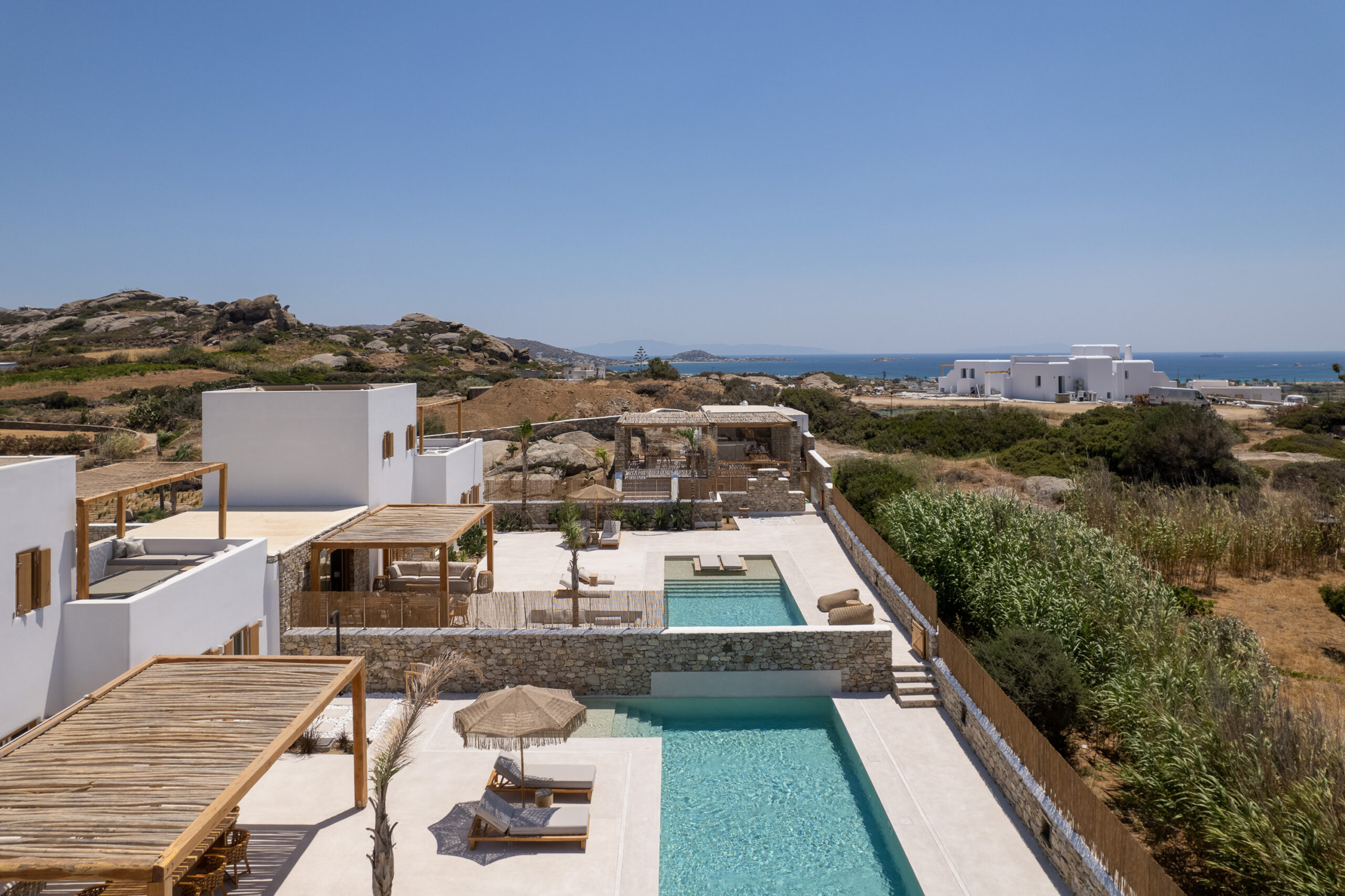 A quelques kilomètres du centre-ville de Naxos et ses paysages naturels ainsi que de la plage dans un environnement calme et reposant, ces ravissantes villas décorées de style Cycladique de manière minimaliste vous offriront une parfaite retraite pour des vacances bien méritées que ce soit pour les couples ou les familles. Quand l’élégance du décor au naturel rencontre la simplicité et le luxe !